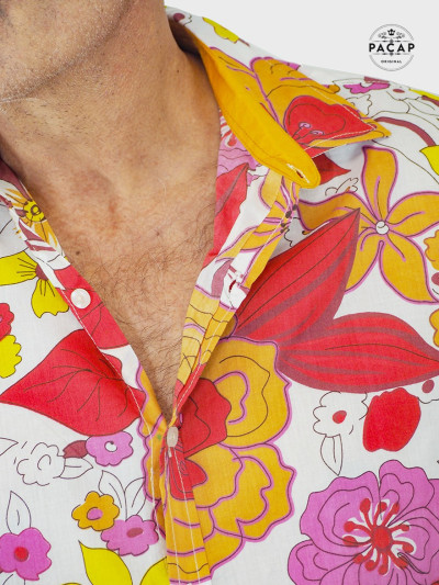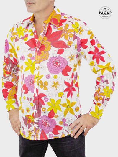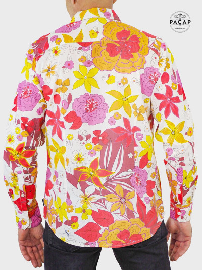 Chemise Vintage Blanche Fleurs Multicolores Pour Homme - JAMMIE